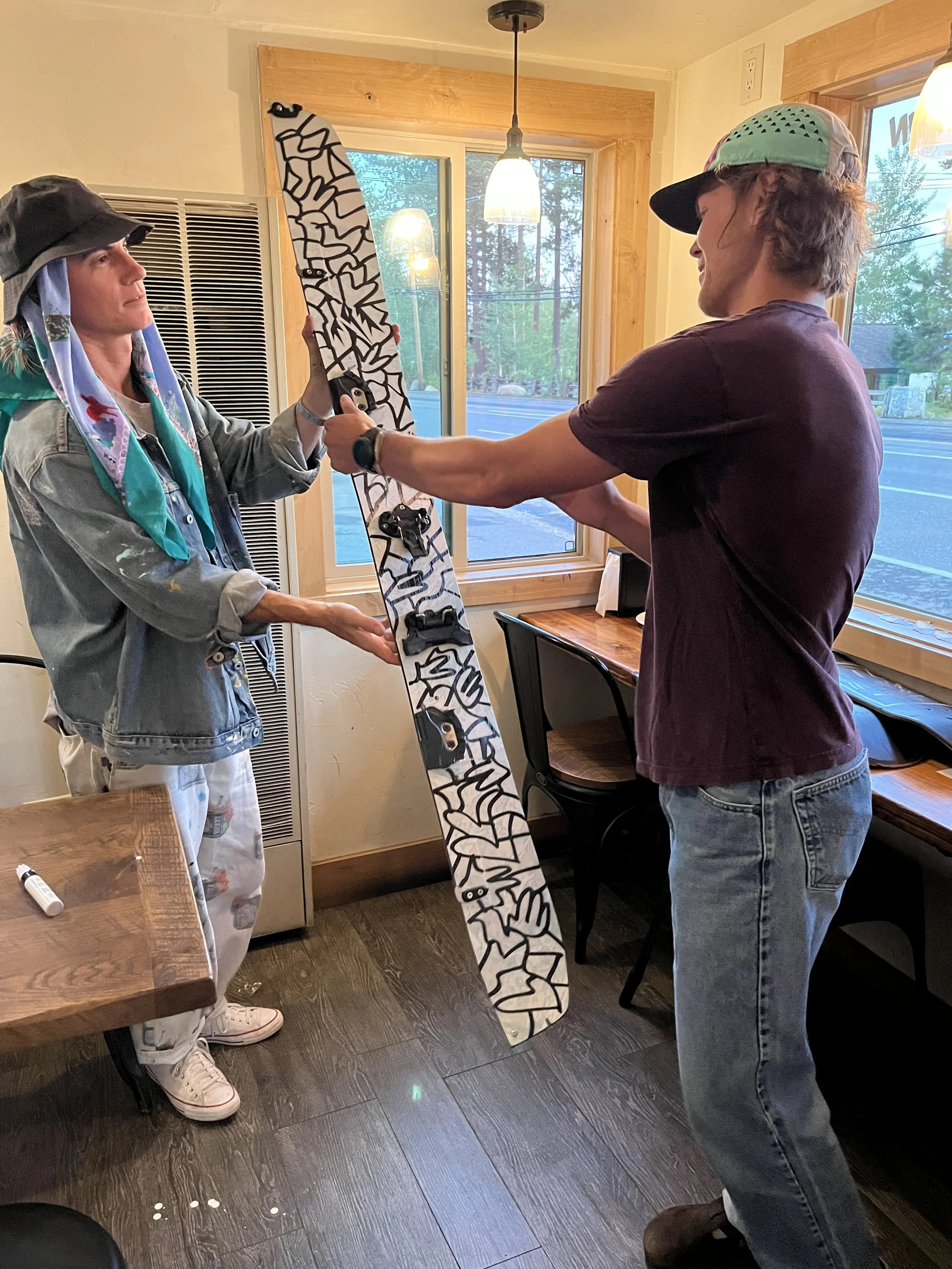 Collaborations I would like to see more of - Tahoe’s Jiffy’s Pizza and Lucas Beaufort. I’ve been following Lucas on IG for a while now, inspired by his doodles and their playful applications. His doodles are pleasantly simple, childishly mosaic, mostly black and white, raw and impromptu - with a paint pen. Jiffy’s is a humble, sanctuary-like, pizza Tahoe lake-front joint that smells of Slush Magazine and ‘shredtastic rail wax aroma. Artists are creatives, duh, and Lucas’s product is uniquely mobile. Lucas is not from Tahoe, not even the states, dude’s French! The collaboration was broadcast mostly on Instagram while he must have been traveling (?), which is how I found out and brought my splitboard to get some fresh paint. FYI Jiffy’s Pizza has the best gluten-free pizza in Tahoe. Lets quickly examine the value propositions here. Jiffy’s Pizza embraces an aligned culture, capturing adjacent consumer groups, and acquires foot traffic and sales by supporting the marketing event space and (presumably) paying for Lucas’s time. Lucas, who has nearly 90k IG followers across the globe, is able to imprint (literally) his aesthetic and brand in a severely targeted and intimate space - I will forever have his doodles on my splitboard; on people’s skateboards, jackets, and shoes. I can’t not visualize the Culture Bomb animation from the Civilization PC games - what good marketing ought to be. Lets amplify the creatives of this world. Can we get a Proof Lab x Hannah Eddy collab please!